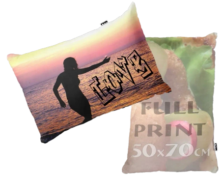 - Pole zadruku: maksymalnie na całej powierzchni FULL (najpierw materiał jest zadrukowany, a później zszywany), wykonany jedno lub dwustronnie. Przy wyborze nadruku jednostronnego tył poszewki biały. Korzystając z opcji nadruku dwustronnego z każdej strony może być wykonany inny, dowolny nadruk.